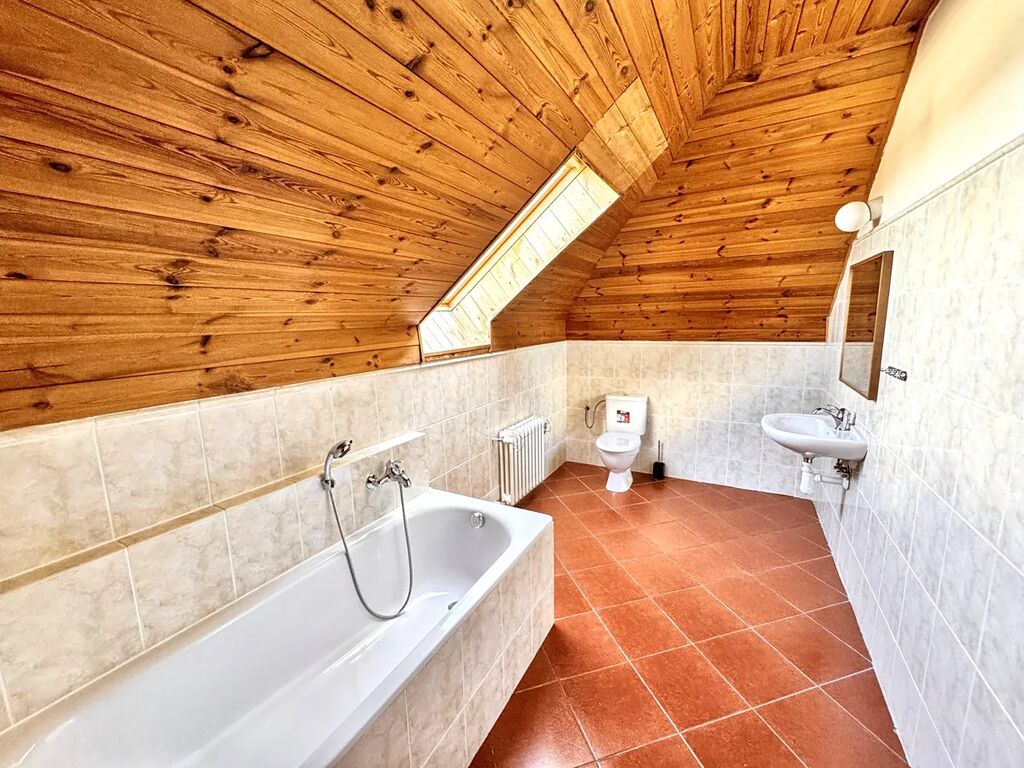 Dům nabízí celkovou užitnou plochu 316 m² a je situován na pozemku o rozloze 522 m². Vstupní podlaží tvoří prostorný obývací pokoj s přímým vstupem na terasu a udržovanou zahradu, samostatná kuchyně a velkorysá koupelna se sprchovým koutem, dvěma umyvadly a oddělenou toaletou. V prvním patře se nacházejí tři ložnice, z nichž dvě disponují vlastním balkonem. Komfort zajišťují dvě koupelny – jedna se samostatnou toaletou a druhá s whirlpool vanou a dvěma umyvadly. V podkroví jsou další dvě ložnice a koupelna s vanou. Suterén domu nabízí plnohodnotné zázemí v podobě garáže pro dvě vozidla, technické místnosti, skladu a multifunkčního pokoje, který lze využít například jako fitness nebo hernu, s vlastní koupelnou a WC. Další dvě parkovací místa jsou k dispozici na pozemku před domem.