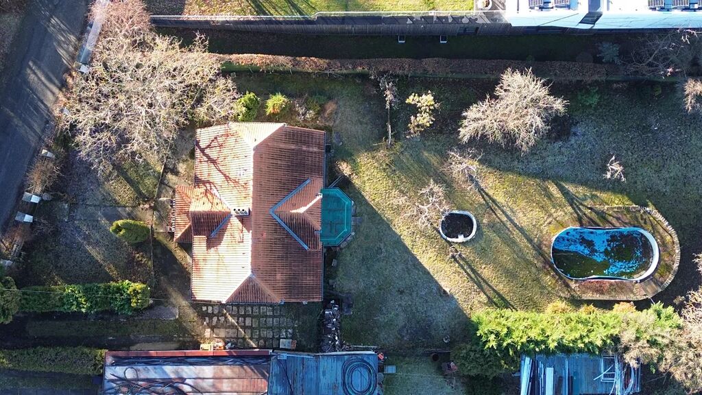 Vlastní pozemek 1.805 m2, zastavěná plocha domu 93 m2, oploceno, mírně svažitý pozemek se SZ orientací, udržovaná okrasná zahrada. Parkování vozidla bezproblémové v přilehlé ulici či na vlastním pozemku. Velice pěkný výhled do krajiny včetně údolí Vltavy.