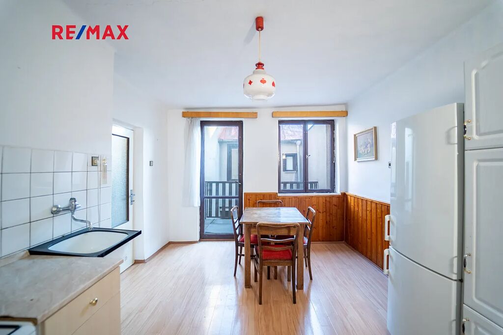 Dovolujeme si Vám nabídnout prodej rodinného domu s nezaměnitelnou atmosférou v samotném srdci Kutné Hory na adrese Jungmannovo náměstí. Řadový dům z roku 1870, postavený z kamene a cihel, se nachází v památkové rezervaci a nabízí jedinečnou možnost citlivé rekonstrukce s respektem k historii. Dům je z části podsklepený, má dvě nadzemní podlaží a půdu. Uvedené výměry jsou orientační. V 1. NP (přízemí, výměra 95,82 m2) se nachází nebytové prostory tvořené čtyřmi místnostmi, vhodné například pro ateliér, dílnu, galerii či menší obchod, a dále vstup na dvorek. Na dvorku je samostatná místnost (4,10 m2) a venkovní WC (1,2 m2). Ve 2. NP (1. nadzemní podlaží/obytné, užitná plocha 106,11 m2 + balkon 4,32 m2) je bytová jednotka 3+1, koupelna a samostatné WC. Ohřev vody zajišťuje karma a vytápění WAW + radiátory. Ve 3. nadzemní úrovni (půda, plocha 104,25 m2) je krov o výšce cca 175 cm, půda může posloužit jako úložný prostor či případná rezerva pro budoucí rozšíření (dle povolení památkové péče). V letech 1992/1993 proběhla rekonstrukce stropů a kanalizace; ve dvou místnostech jsou hurdiskové stropy, ostatní stropy dřevěné. Okna jsou dřevěná, přibližně 40 let stará, jednosklo. Podlahy v přízemí jsou betonové. Plyn je do domu zaveden, plynový kotel je cca 18 let starý, v patře je umístěna expanzní nádoba. Komín byl před osmi lety vyvložkován ve 2. NP pro krbová kamna (v 1. NP vyvložkování není). Elektřina je v hliníku 220/380 V, rozvody vody jsou původní (ne v plastu). Dům svým charakterem láká milovníky staré Kutné Hory a je ideální pro kombinaci bydlení a podnikání – nebytový prostor v přízemí nabízí široké možnosti využití. Počítejte s modernizací oken, elektroinstalace, rozvodů vody a případně systému vytápění; všechny zásahy je třeba řešit s ohledem na požadavky památkové péče. Lokalita zajišťuje bezprostřední dostupnost památek, kaváren, restaurací, škol i služeb, přičemž dům leží přibližně 5 minut chůze od vlakového nádraží – po cestě z nádraží směrem na náměstí. Zároveň je zde pohodlné spojení v rámci města i směrem na Prahu a Čáslav. Pokud hledáte dům s příběhem, který si přetvoříte dle svých představ, a chcete žít i tvořit v jedné z nejkouzelnějších lokalit v Česku, tato nemovitost je připravena na vaši další kapitolu. Pro více informací a sjednání prohlídky nás kontaktujte.