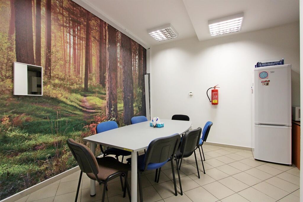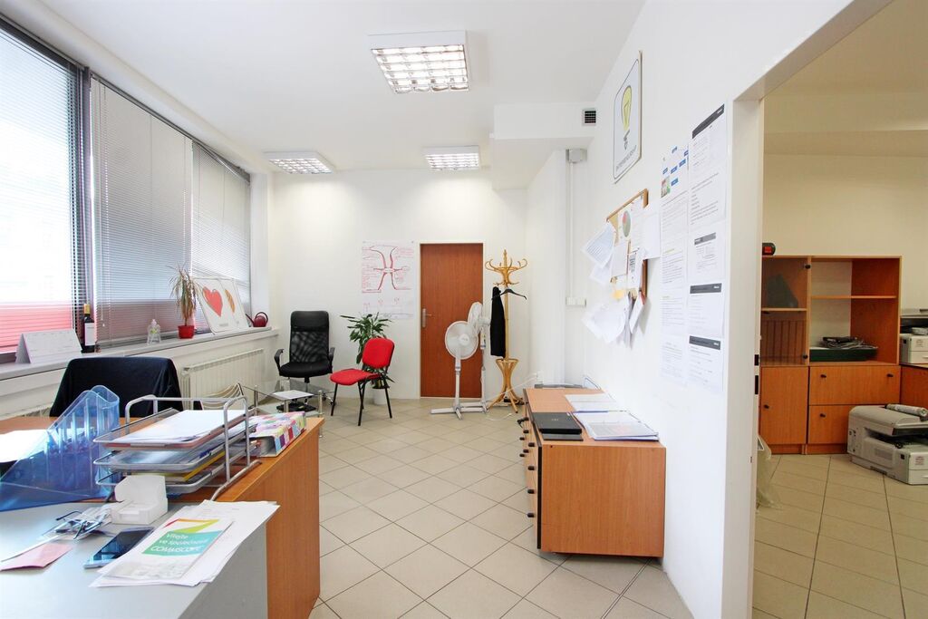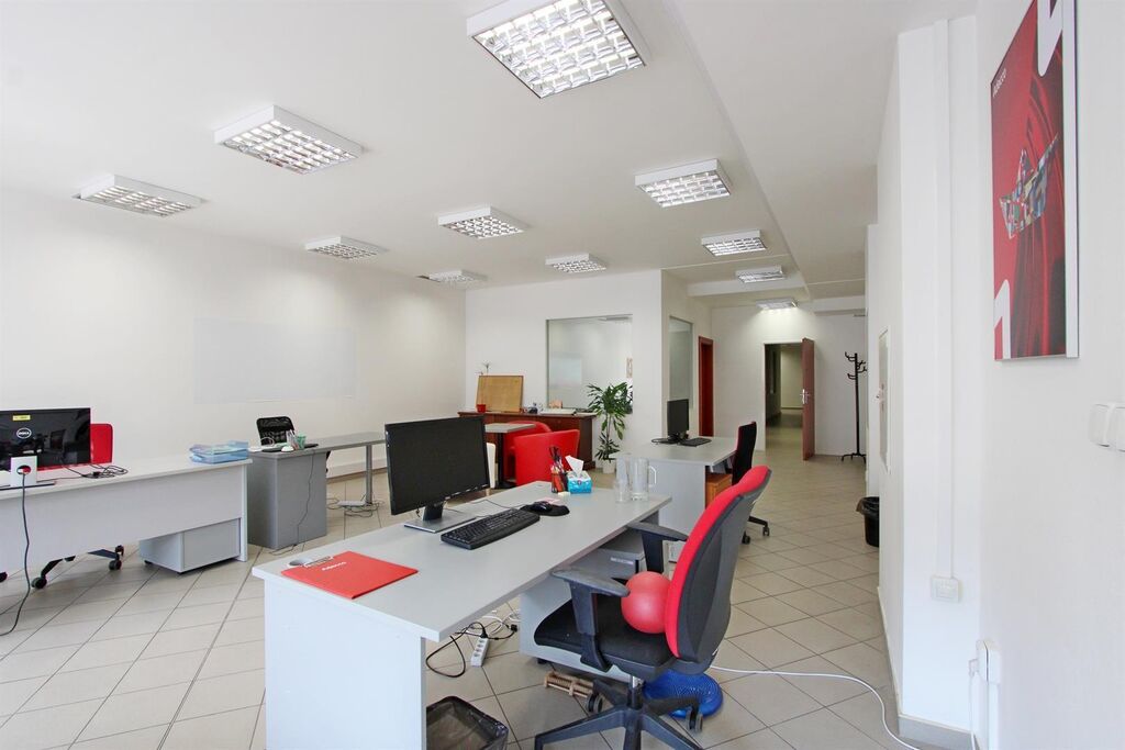 Kanceláře o celkové ploše 318 m2 se nachází v 1. patře (2. NP) cihlové budovy z roku 2005. Přístup je možný jak po schodišti z ulice, tak bezbariérově prostřednictvím výtahu. Dispozice zahrnuje 9 místností - jednotlivé kanceláře, jednací místnosti, kuchyňku a sociální zázemí pro dámy i pány. Součástí je také menší terasa.
