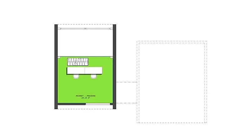 V 1.patře se nachází další pokoj, nebo pracovna o výměře 19,15m2.