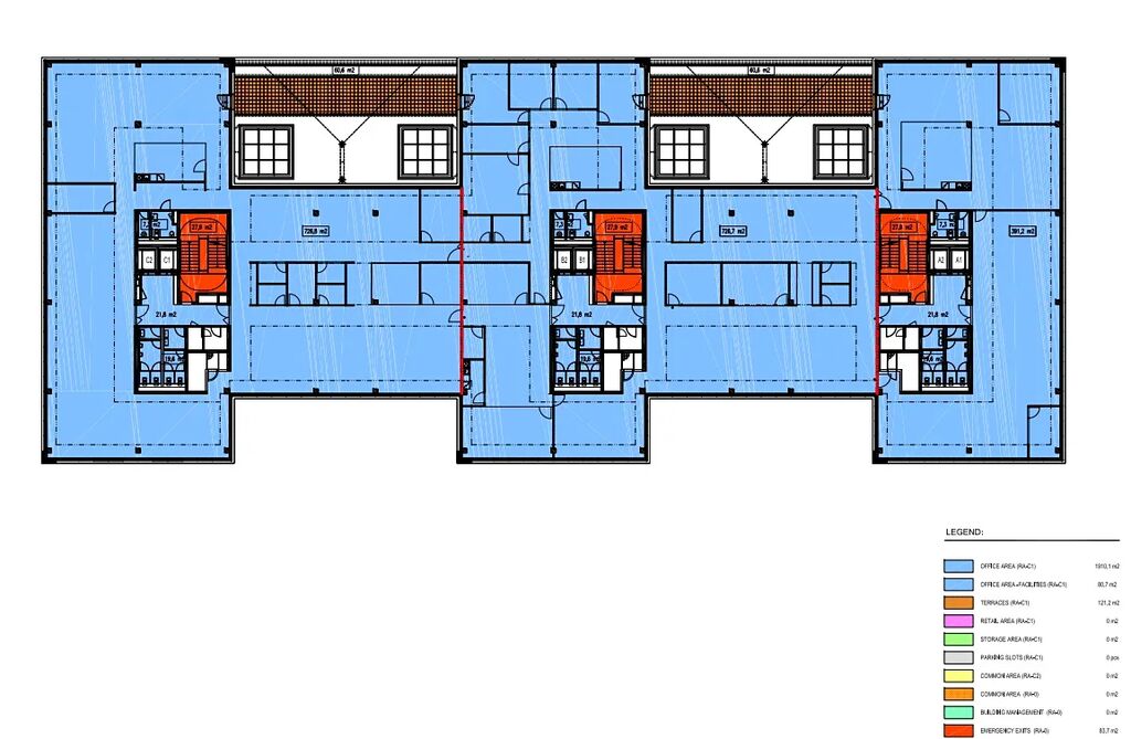 3. patro, kanceláře 1 990 m2 + 120 m2 terasa (k dispozici od 07/2026)