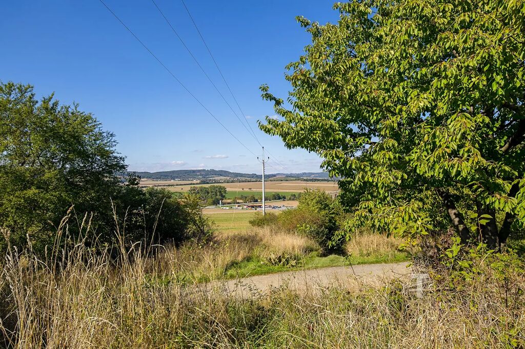 Výhodou je výborná dostupnost na státní silnici, šířka pozemku a výhled z možné budoucí stavby. Orientovaný jižním směrem, což skýtá krásné výhledy na okolí a na obec.