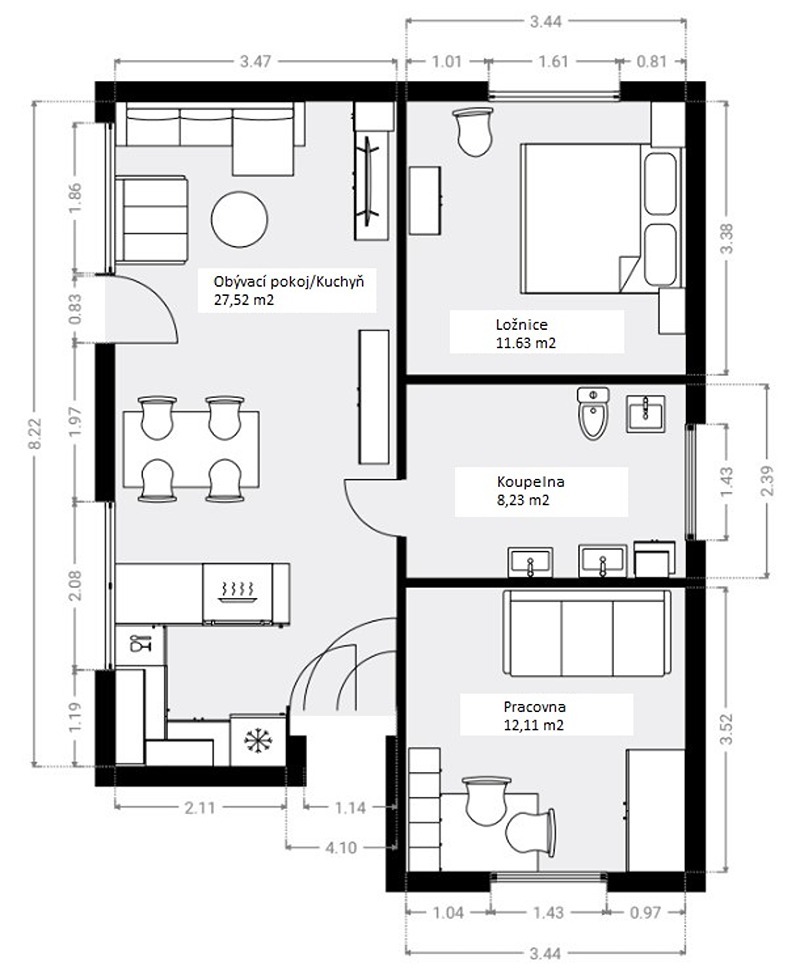 V 1.NP je bytová jednotka o dispozici 2+1, v 2.NP se nachází byt 3+kk. Oba byty jsou velmi světlé. Každý má vlastní balkon a koupelnu se sprchovým koutem.