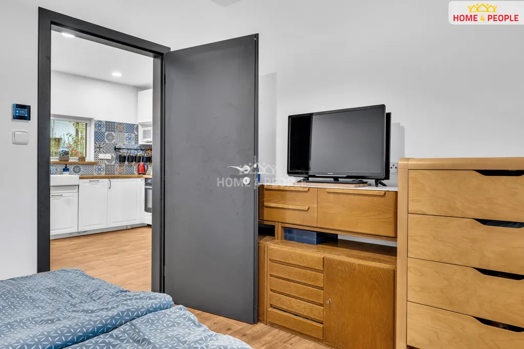Dominantou domu je kuchyň s obývacím pokojem s kachlovými kamny na dřevo což dodává krásnou atmosféru celému domu. Dále najdete dvě ložnice, krásnou koupelnu s vanou a wc.