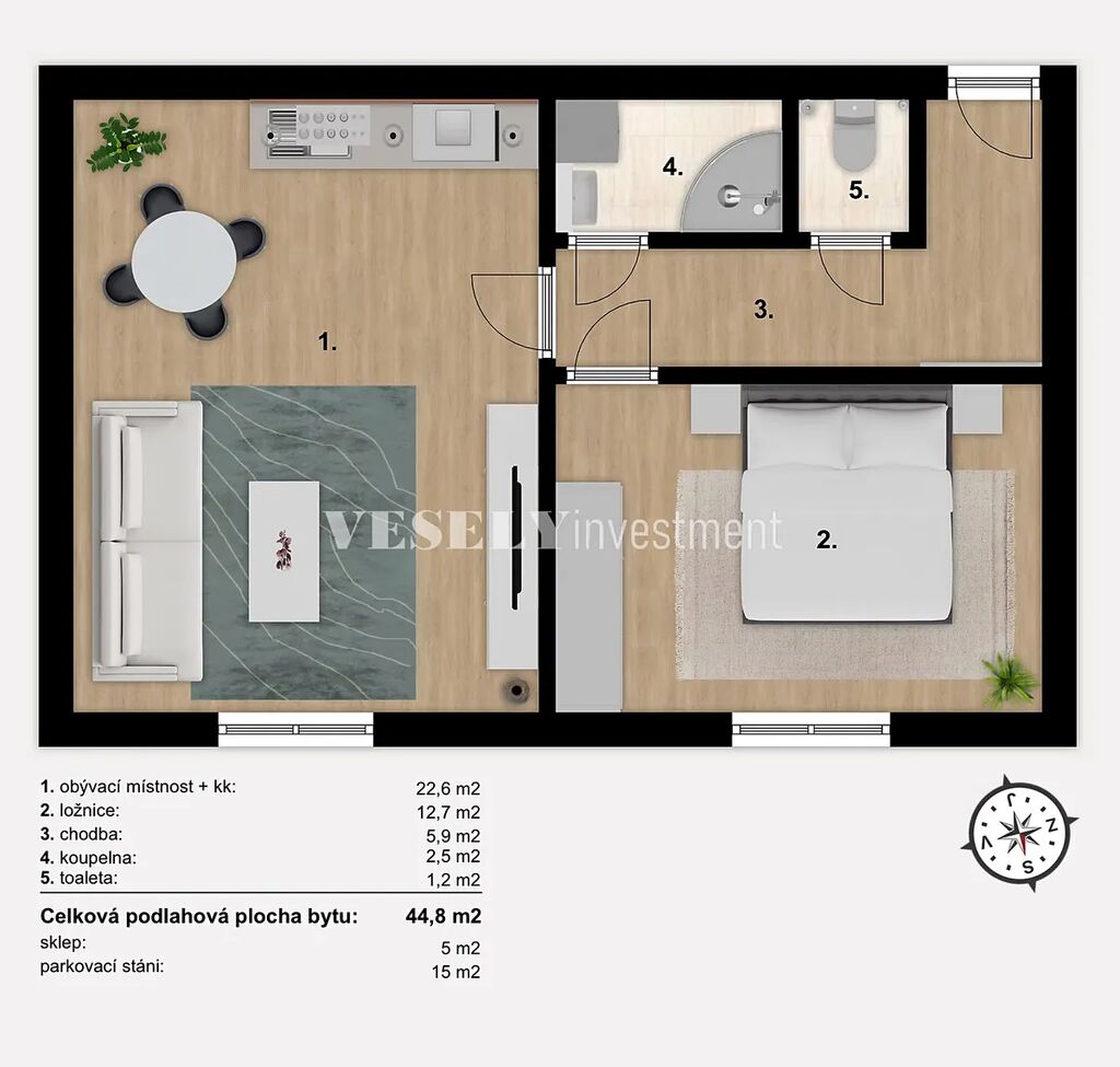 • k bytu náleží privátní parkovací stání ve vnitrobloku domu a sklep 5 m2 v suterénu domu