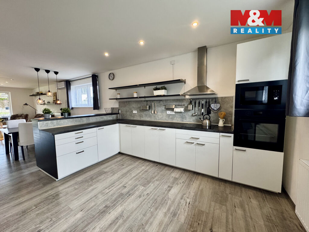 V kuchyňském koutu najdeme moderní linku, která je vybavena vestavěnými spotřebiči. O teplo a nízké provozní náklady se stará plynový kotel, který v kombinaci s krbem a klimatizací zaručuje ideální komfort v každém ročním období.