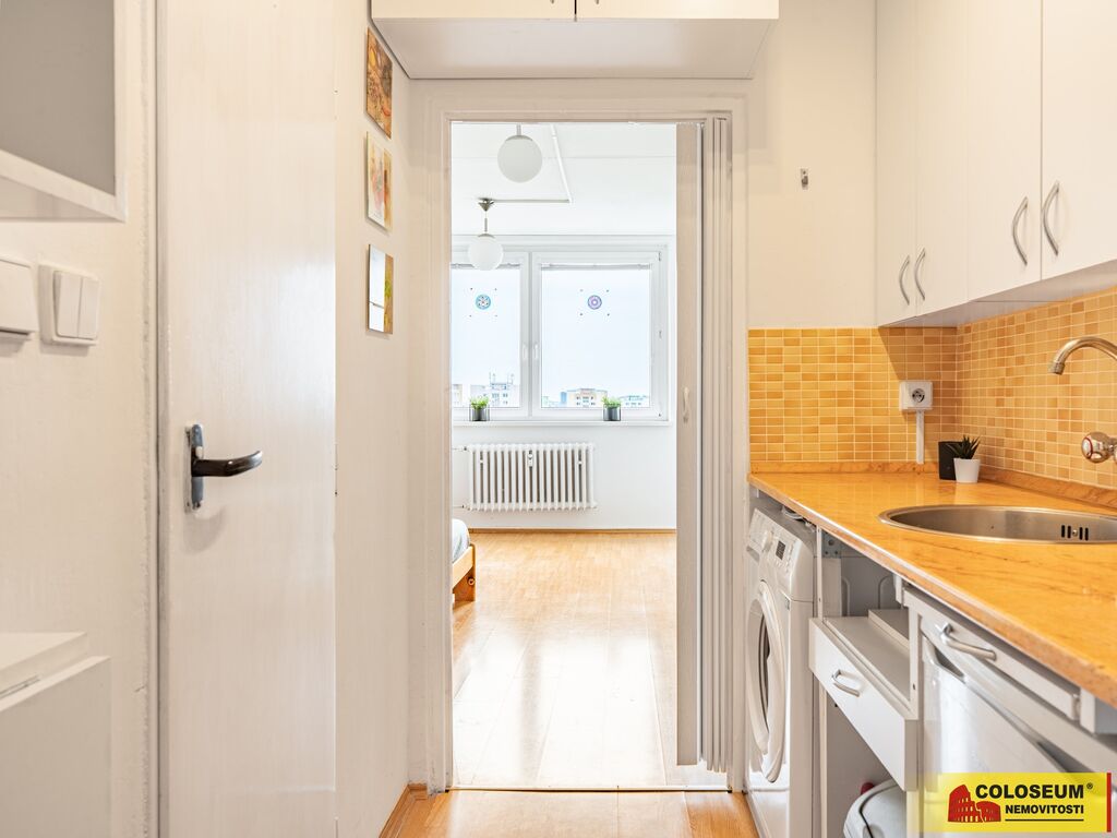 Tento byt o rozloze cca 28 m2 se nachází v 10. patře jedenácti patrového panelového domu s výtahem a je tou pravou volbou pro ty, kteří hledají komfort, pohodlí a klid.