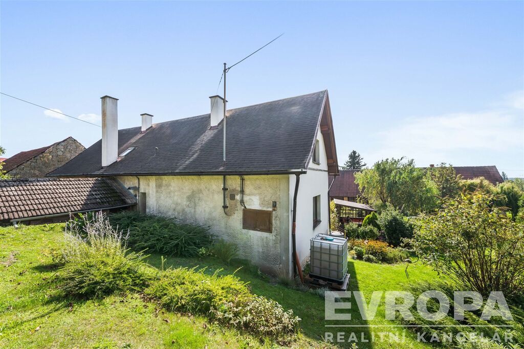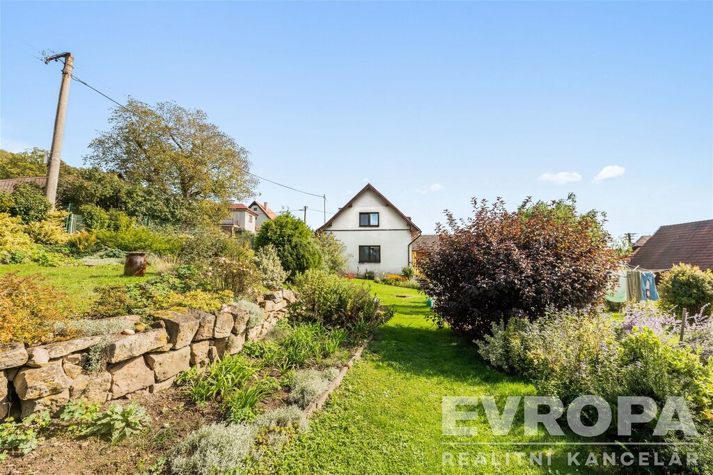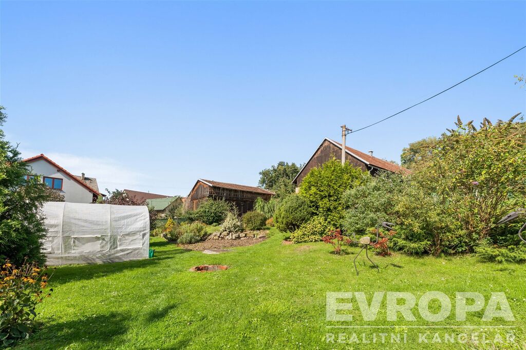 Dominantou domu je krásná udržovaná oplocená zahrada na níž stojí dřevěná kůlna a cihlová stavba (přídomek) ve velmi dobrém stavu s prostory bývalých chlévů a oddělená garáž na jeden OA. Na zahradě v zemi je nádrž o velikosti 1000l na dešťovou vodu.