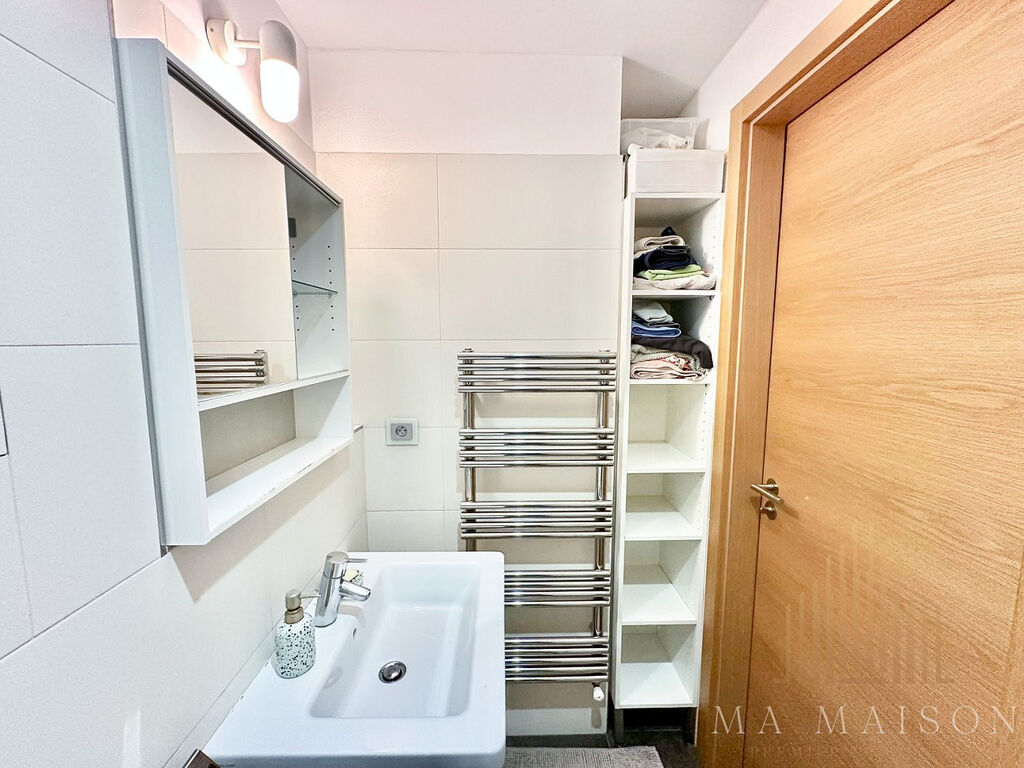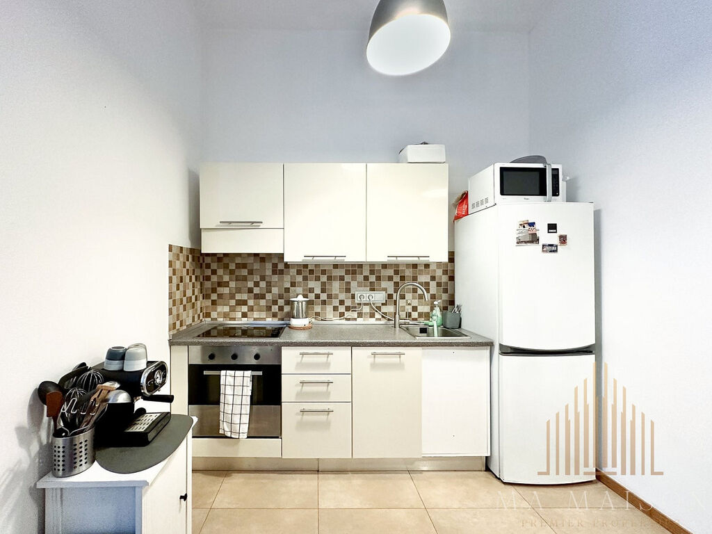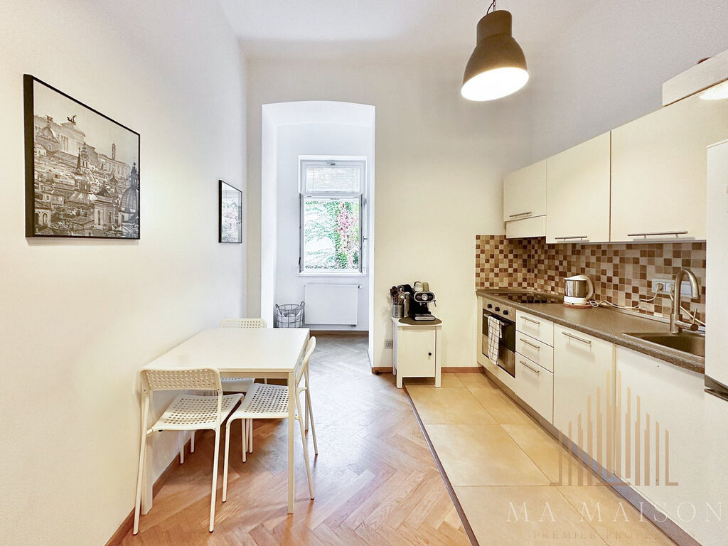 Byt se nachází v 1. nadzemním podlaží revitalizovaného historického domu s výtahem a sestává se ze: vstupní chodby, dvou ložnic, koupelny s WC a sprchovým koutem, jídelnou s kuchyňskou linkou a komorou. Koupelna je vybavena umyvadlem, umyvadlovou skříňkou, zrcadlem. V komoře najdete pračku. Byt je částečně vybaven – v každé z ložnic se nachází manželská postel včetně matrací, noční stolek, psací stůl s židlí a skříň. Kuchyňská linka je téměř kompletně vybavena – sklokeramická varná deska s troubou, digestoř, mikrovlnná trouba, lednice s mrazákem. Na chodbě botník, na stěnách obrazy, v jídelně stůl s židlemi.