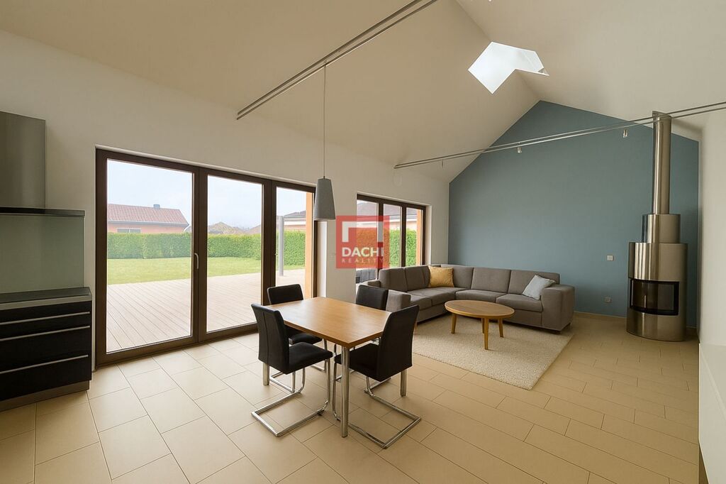 Nabízíme k prodeji zděnný rodinný dům v nadstandardním provedením, dispozičně 5+kk o užitné podlahové ploše 189m a se zahradou 847m. Dům je zateplený, přízemní, s terasou, bazénem a dvojgaráží. Na zahradě se nacházejí okrasné stromky a keře, bazén a také vlastní kopaná studna. Na sedlové střeše je betonová taška, okna jsou plastová, trojskla, všechna okna jsou vybavena předokenními elektrickými žaluziemi, které přispívají k tepelnému komfortu. Vytápění je kombinovaným plynovým kotlem do podlahového topení v celém domě. V domě je velký obývací pokoj, který je propojen s kuchyní a dále 4 samostatné pokoje (ložnice). Jedna koupelna s vanou i sprchovým koutem a dále dvě samostatné WC. Šatna, komora a technická místnost jsou samozřejmostí. Podlahy jsou z prken z masivního dřeva, dlažba, nebo koberce. Dům byl kolaudován v roce 2012. Cena na vyžádání v RK.