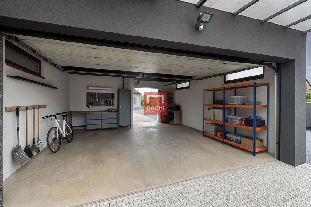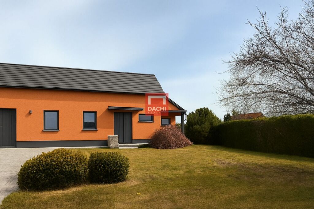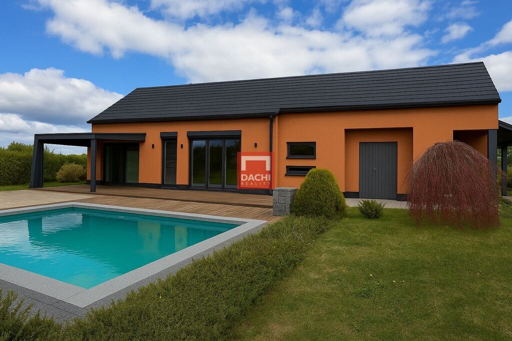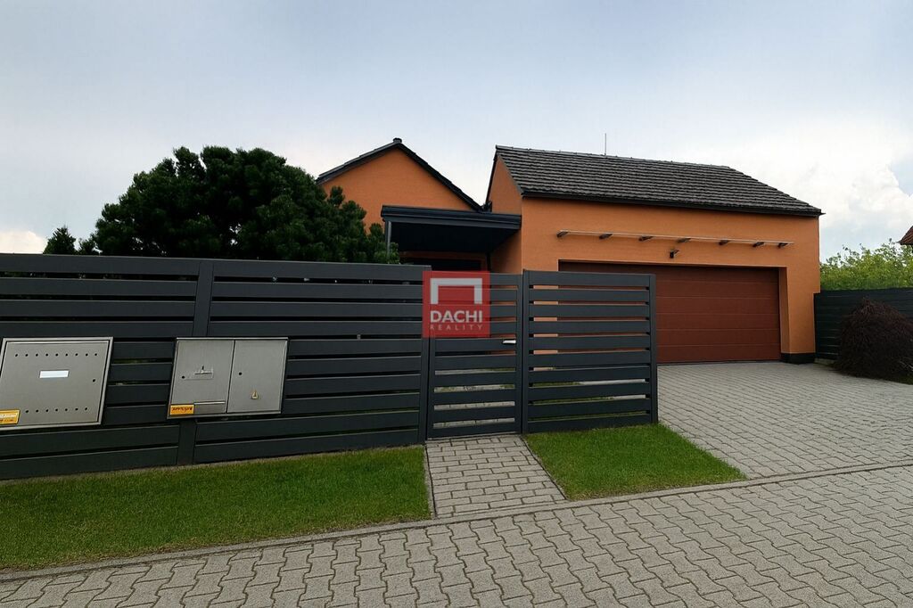 Nabízíme k prodeji zděnný rodinný dům v nadstandardním provedením, dispozičně 6+kk o užitné podlahové ploše 220m a se zahradou 847m. Dům je zateplený, přízemní, s terasou, bazénem a dvojgaráží. Na zahradě se nacházejí okrasné stromky a keře, bazén a také vlastní kopaná studna. Na sedlové střeše je betonová taška, okna jsou plastová, trojskla, všechna okna jsou vybavena předokenními elektrickými žaluziemi, které přispívají k tepelnému komfortu. Vytápění je kombinovaným plynovým kotlem do podlahového topení v celém domě. V domě je velký obývací pokoj, který je propojen s kuchyní a dále 3 samostatné pokoje (ložnice). Další dvě místnosti jsou těsně před dokončením. Jedna koupelna s vanou i sprchovým koutem a dále dvě samostatné WC. Šatna, komora a technická místnost jsou samozřejmostí. Podlahy jsou z prken z masivního dřeva, dlažba, nebo koberce. Dům byl kolaudován v roce 2012.