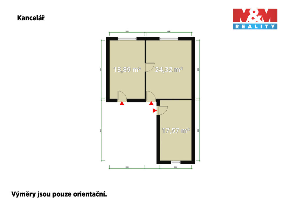 Samotný prostor je rozdělen do 3 průchozích místností, které je však možné uzamknout a mít 3 samostatné místnosti s vlastním vstupem. Na patře se k výhradnímu užívání nachází malá kuchyňka a WC.