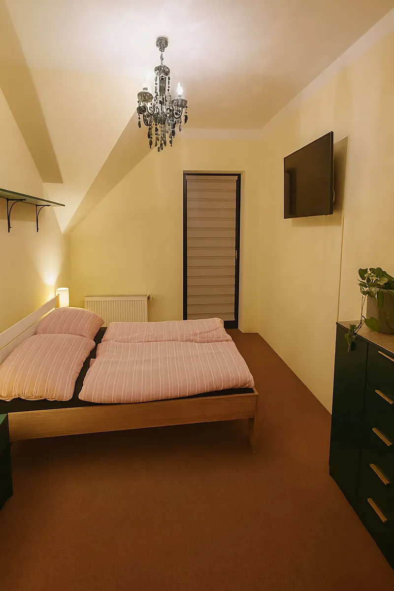 Byt se nachází ve 2. patře cihlového domu. Dispozice: 2 samostatné ložnice, obývací pokoj s jídelní částí a plně vybavená kuchyň (trouba, sporák, myčka, pračka, úložné prostory).