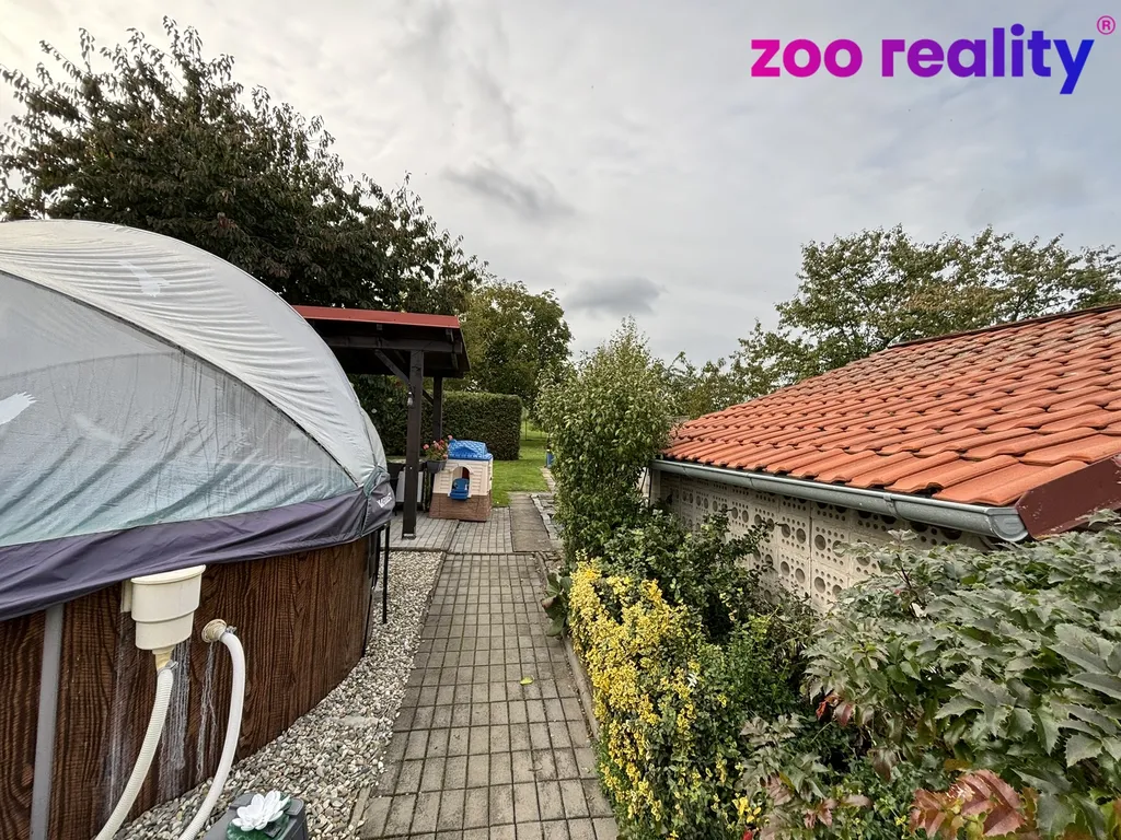 Součástí pozemku jsou také zděné přístavky pro uskladnění zahradní techniky, vinný sklípek, zahradní pergola, kryté posezení s udírnou, bazén a rozsáhlá zahrada s ovocnými stromy, odkud se otevírá krásný výhled do okolní přírody.