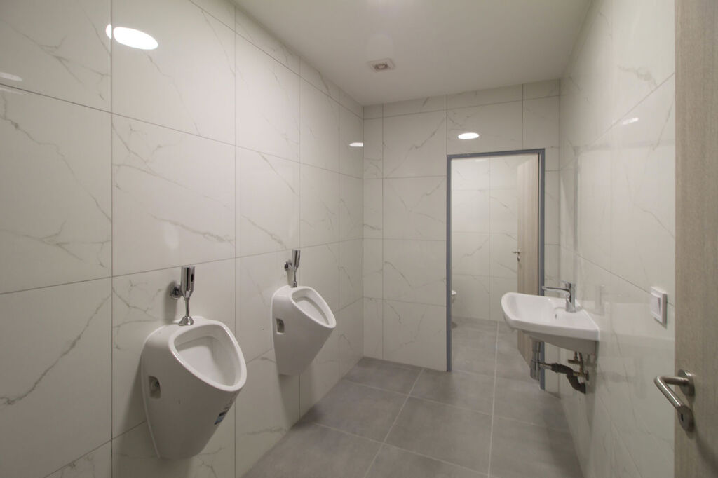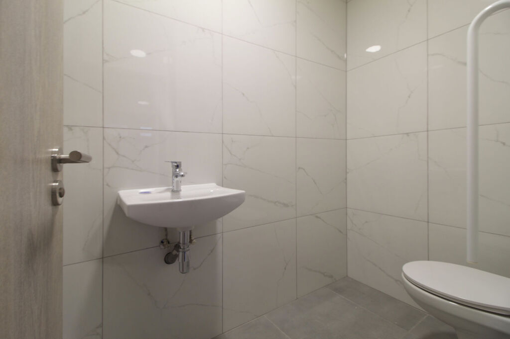 Komerční prostor je po rekonstrukci. Na podlaze jsou použita velkoformátová dlažba. Na stropě jsou snížené podhledy a budou ještě instalována světla. Jsou zde WC pro muže, pro ženy a pro handicapované. V prostoru jsou připraveny přípojky na vodu, teplou vodu a odpad. K prostoru náleží sklad a prostor, kde je možné udělat chladicí místnost.
