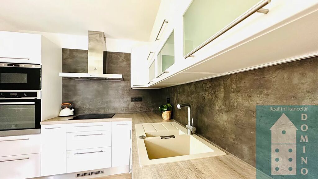 - kuchyně – zde byla vybudovaná krásná kuchyňská linka včetně veškerých spotřebičů i myčky, kde se vám bude příjemně vařit, je zde rovněž dostatek místa na jídelní kout.