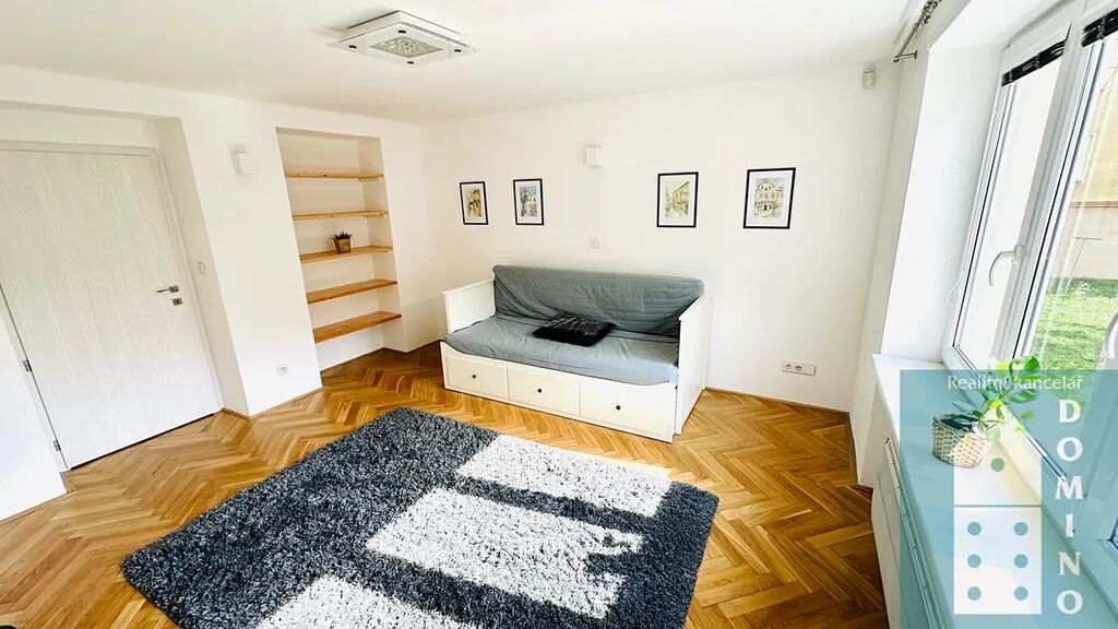 - druhý pokoj s prostornou vestavěnou skříní – tento pokoj lze využít jako ložnici nebo pracovnu.