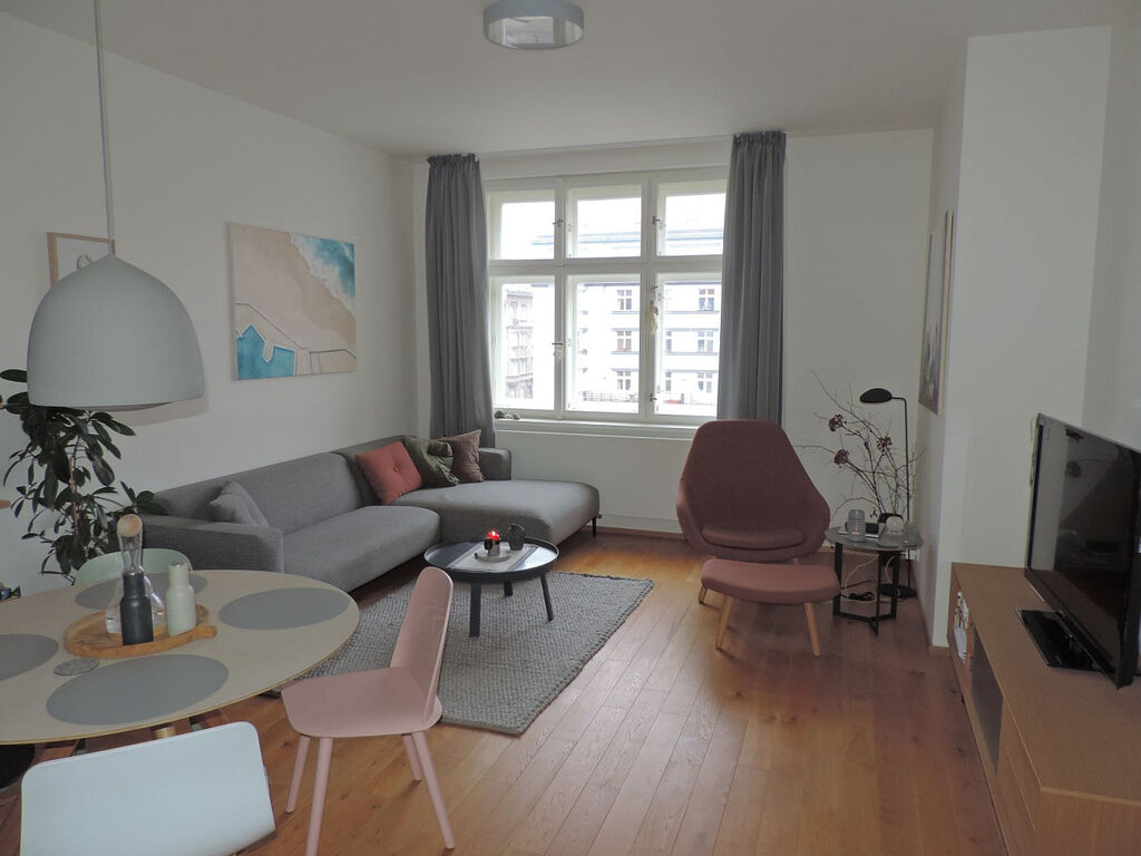 Moderní byt se nachází ve 3. patře zrekonstruovaného domu s výtahem v centru Dejvic a sestává ze tří samostatných pokojů (25,4m²+17,8m²+15,6m²) a vybavené kuchyně (8m²), dále je součástí bytu chodba, koupelna se sprchovacím koutem a samostatné WC. K bytu náleží sklepní kóje (2,7m²) v suterénu domu.