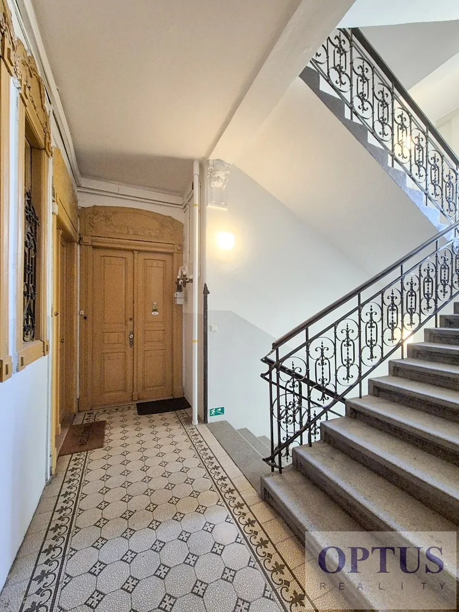 Nabízíme částečně zařízený nadstandardní byt 2 + kuchyňský kout o velikosti 42,68 m2, situovaný ve 2. nadzemním podlaží reprezentativního secesního domu s výtahem. Byt je orientovaný na severozápad s výhledem do dvora.