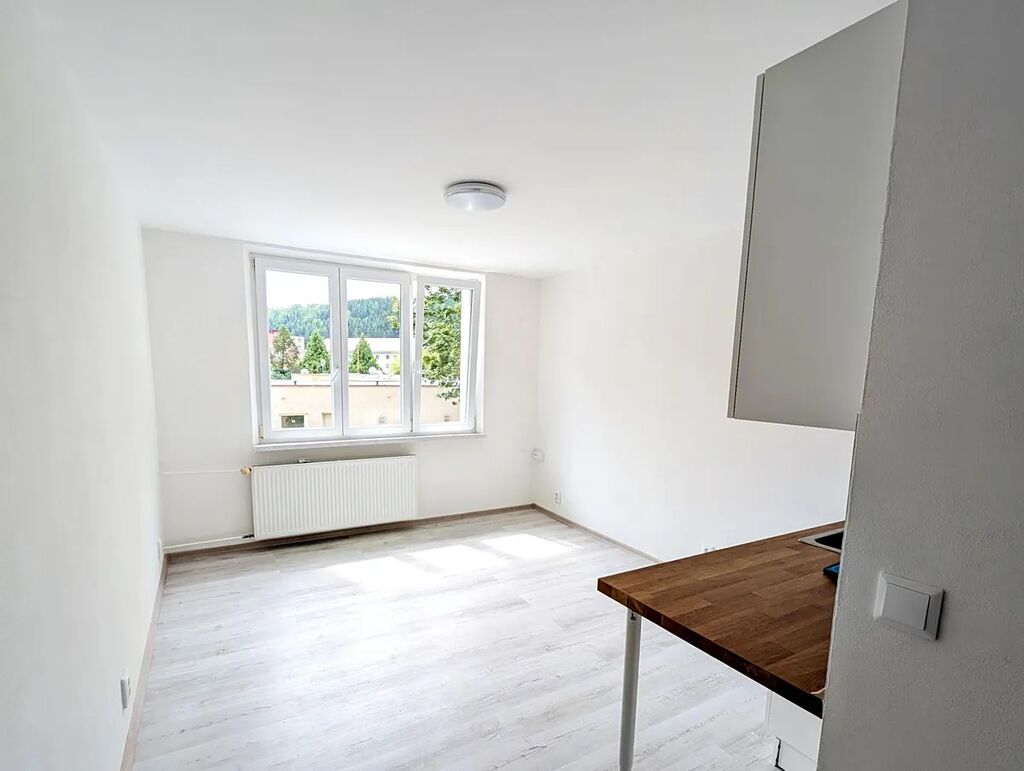 Nabízíme k pronájmu byt o dispozici 1+kk a výměře 22,54 m, který se nachází v 1. patře (2. nadzemní podlaží) panelového domu s výtahem. Byt je situován v klidné lokalitě města Kraslice, s výbornou dostupností všech služeb.