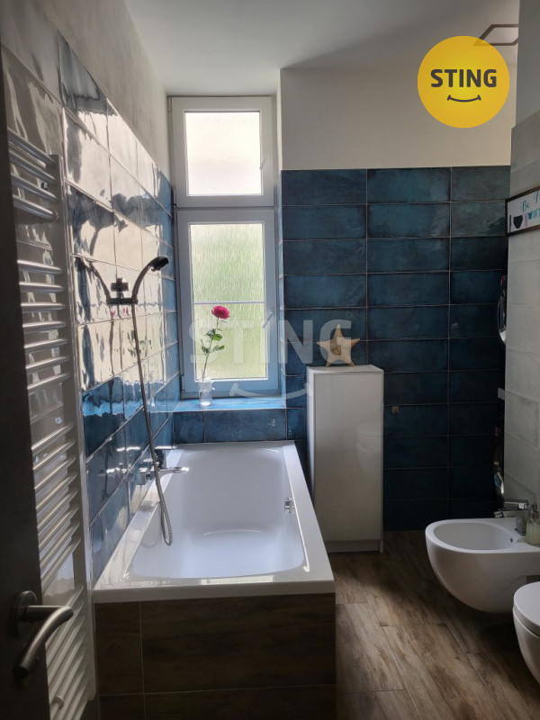 Z dvoukřídlových vstupních dveří se dostáváme do předsíně, která má chytré svícení ve formě nočního, orientačního LED osvětlení na pohybové čidlo. Po její levé straně se nachází samostatná toaleta a menší balkon. Po pravé straně se dostaneme do prostorného obývacího pokoje, který je osobitý příjemným stropním LED osvětlením na dálkové ovládání, které je umístěno po stranách celé místnosti. Další prostornou místností je ložnice, která nabízí dostatek místa pro úložné a odkládací systémy, třetí pokoj je menší , velmi vhodný pro dětský pokoj nebo pracovnu. Pokoje jsou neprůchozí a světlé - velká dělená okna, úsporné LED osvětlení. Kuchyň je vybavena moderní kuchyňskou linkou na míru s vestavěnými spotřebiči a oboustranným kuchyňským ostůvkem s barovým posezením, které tvoří zajímavou dominantu bytu. Koupelna s oknem, vybavena vanou, závěsné WC a závěsný bidet - jistě oceníte nezávislé podlahové topení. v bytě je také další WC s oknem. V místnostech plovoucí podlahy, vstupní část, kuchyň a koupelna, také obě WC s dlažbou. Nízké náklady na bydlení! Parkování je možné přímo u domu, velkou výhodou rezidentská karta. K nemovitosti náleží sklep.