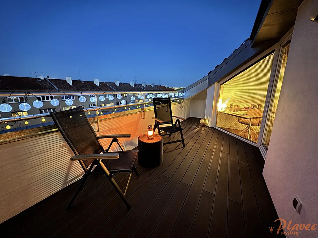 terasou v ulici Jerevanská, Praha – Vršovice. Byt se nachází v udržovaném, cihlovém domě, který prošel v roce 2010 rekonstrukcí, přičemž horní část, kde se byt nachází, byla vybudována jako novostavba. Jedná se o rohový byt o užitné ploše 59,59 m2, kde dominantou je terasa 14,24 m2 s krásným výhledem na Prahu. Byt je laděn v moderním stylu. Je ideální pro ty, kteří hledají