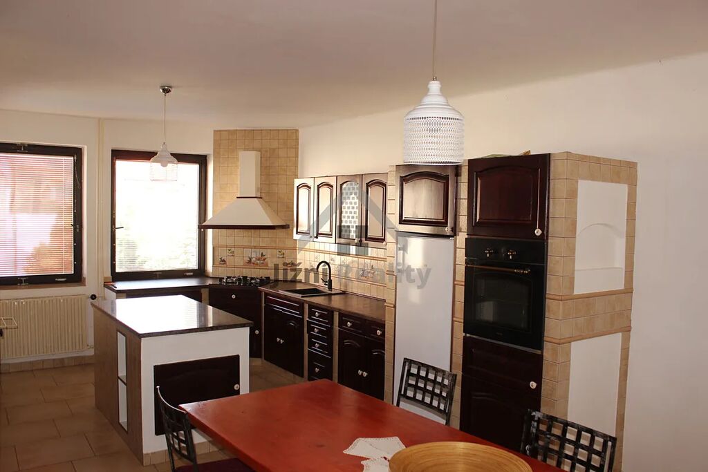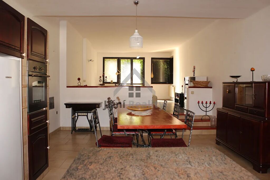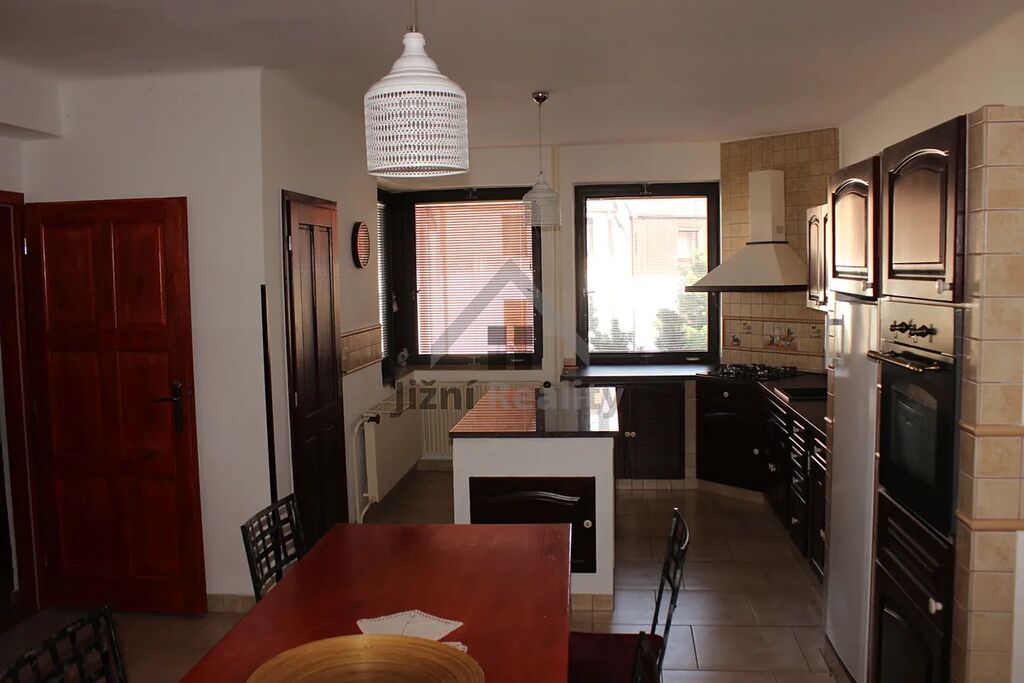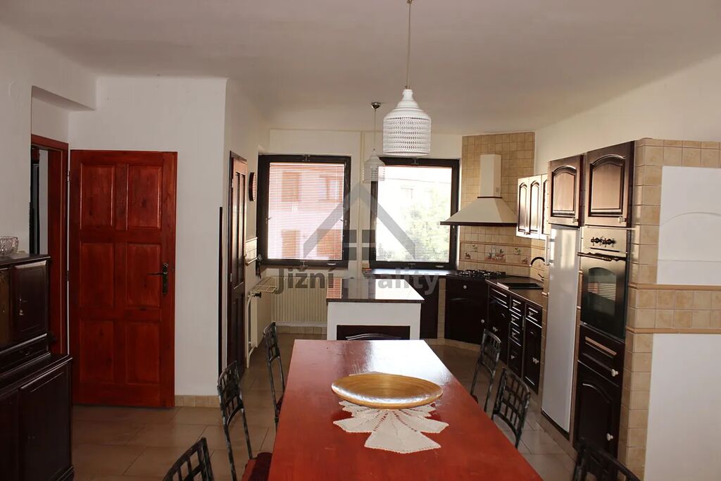 Nabízíme Vám k prodeji rodinný dům o dispozici 5 + kk, který se nachází v atraktivní a velice lukrativní čtvrti okresního města Strakonice se zajímavými prostory jako je například garáž s dílnou, nebo anglický dvůr. Nemovitost se nachází na vlastním pozemku o velikosti 328 m2. Zastavěná plocha domu je 110 m2, užitná je 300 m2. Dominantou domu je prostorný obývací pokoj s kuchyní v americkém stylu, ze kterého lze vyjít na terasu a následně na útulnou zahrádku. K obývacímu pokoji a kuchyni v prvním patře náleží ještě ložnice a sprchový kout s WC. Ve druhém patře se nachází další tři pokoje, koupelna a velká terasa. V přízemí se nachází kromě garáže a anglického dvora ještě sklep, technická místnost a dvě dílny. Dům je vytápěn plynovým kotlem a je připojen na městskou kanalizaci i vodovod. V okolí domu se nachází veškeré občanské vybavení škola, školka, obchody, restaurace, cyklostezkyNemovitost je možné financovat hypotečním úvěrem. V případě jakýchkoliv Vašich dotazů mne neváhejte kontaktovat.