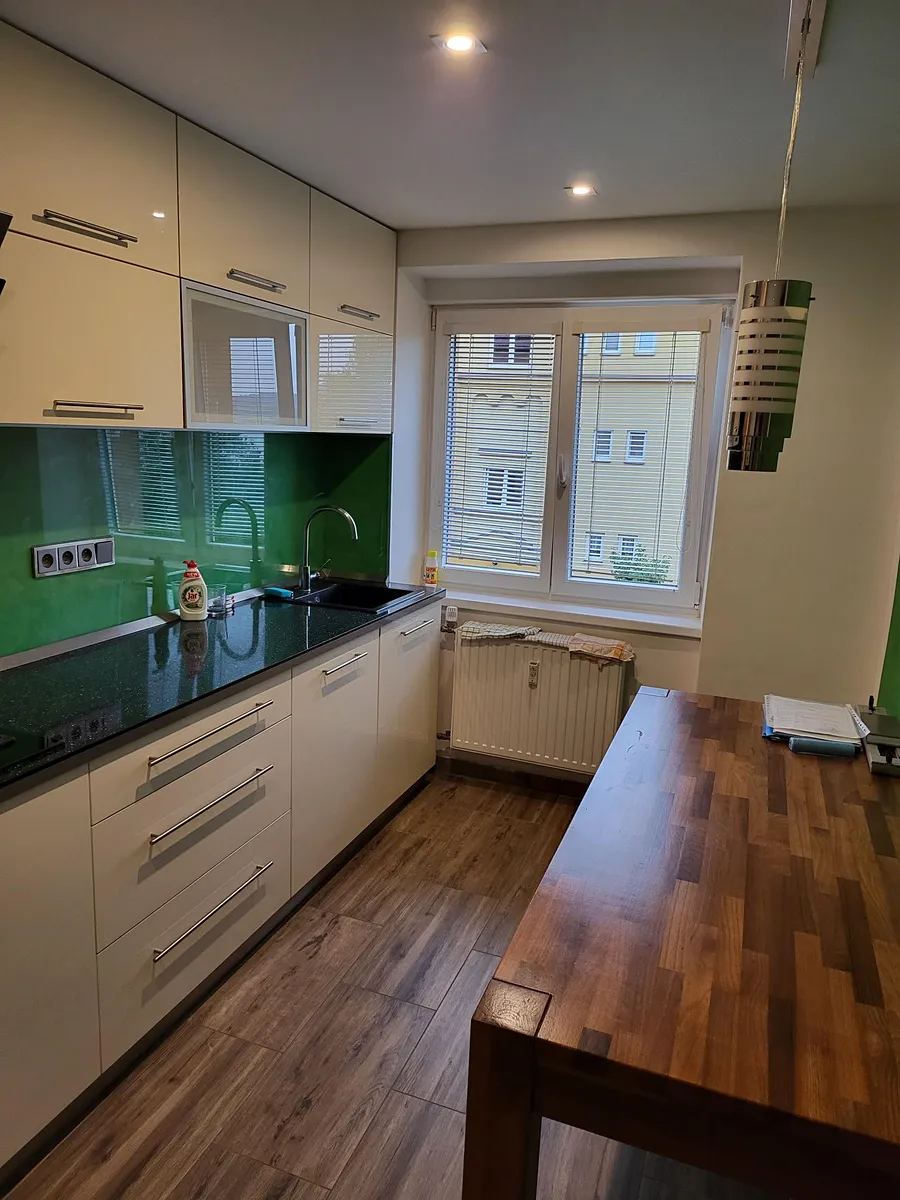 V pokojích jsou vestavěné skříně, kuchyně je vybavena kuchyňskou linkou včetně spotřebičů.