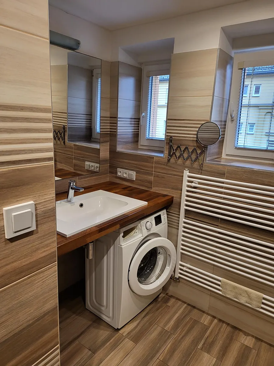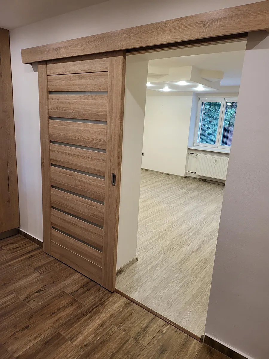 Byt se skládá ze vstupní chodby, koupelny s pračkou, samostatného WC, obývacího pokoje, kuchyně, ložnice a dětského pokoje.