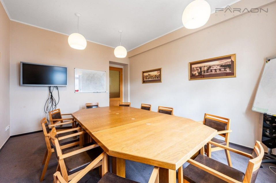 Nájemné činí 5 355,- Kč + poplatky 2 600,- Kč (elektrika, topení, spotřeba teplé a studené vody, úklid kanceláře i společných prostorů, výtah). Zasedací místnost k použití v ceně (nutnost rezervace na recepci). Dále k dispozici využití kuchyňky, na zavolání IT technik a údržbář.