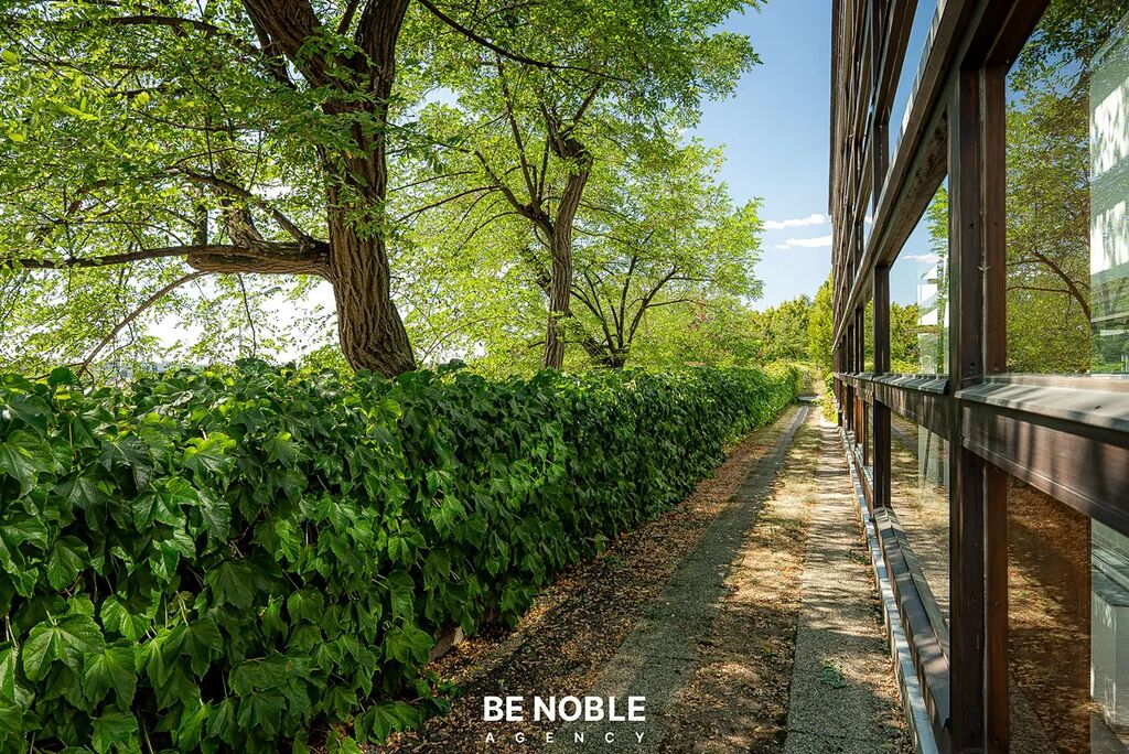 Vysoké stropy, velká okna a prosklená oranžerie s termofoliemi dodávají celému prostoru klid a harmonii. Díky této konstrukci, v kombinaci se vzrostlými stromy před okny, si byt udržuje příjemné klima – v létě chlad, v zimě teplo. Samozřejmostí je klimatizace a vnější žaluzie s velkými lamelami, které zajišťují nejen komfort, ale i soukromí.