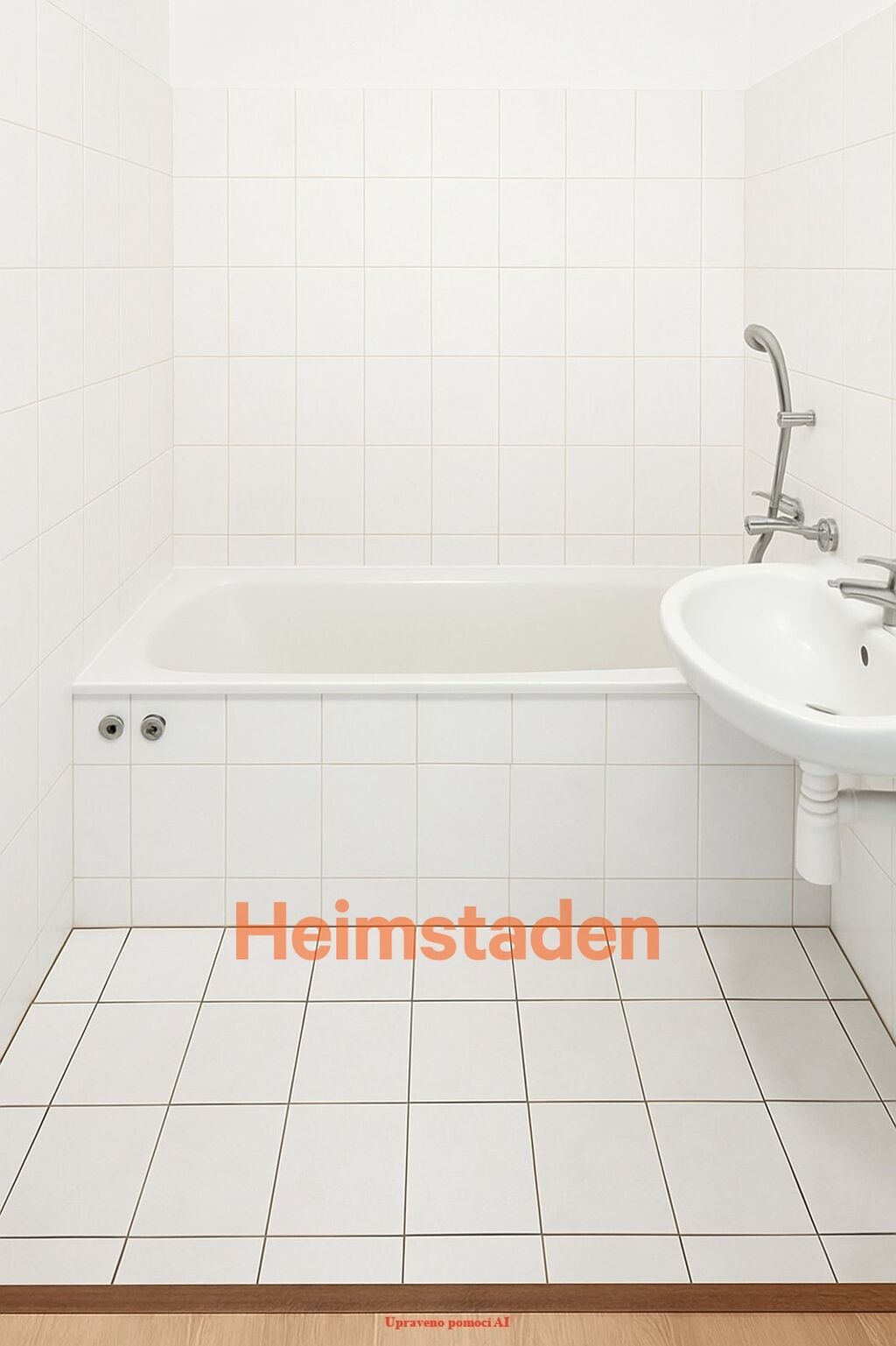 V koupelně v bílé barvě najdete vanou pro večerní pohodu, prostor pro pračku i připravenou přípojku.