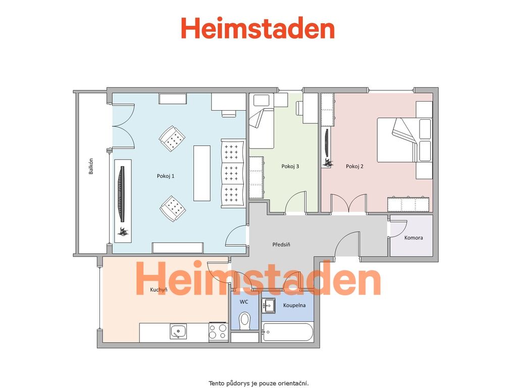 Dispozice nabízí tři neprůchozí pokoje, takže každý člen domácnosti má své soukromí. Dominantou bytu je prostorný obývací pokoj, který přímo vybízí k relaxaci či setkávání s rodinou a přáteli.