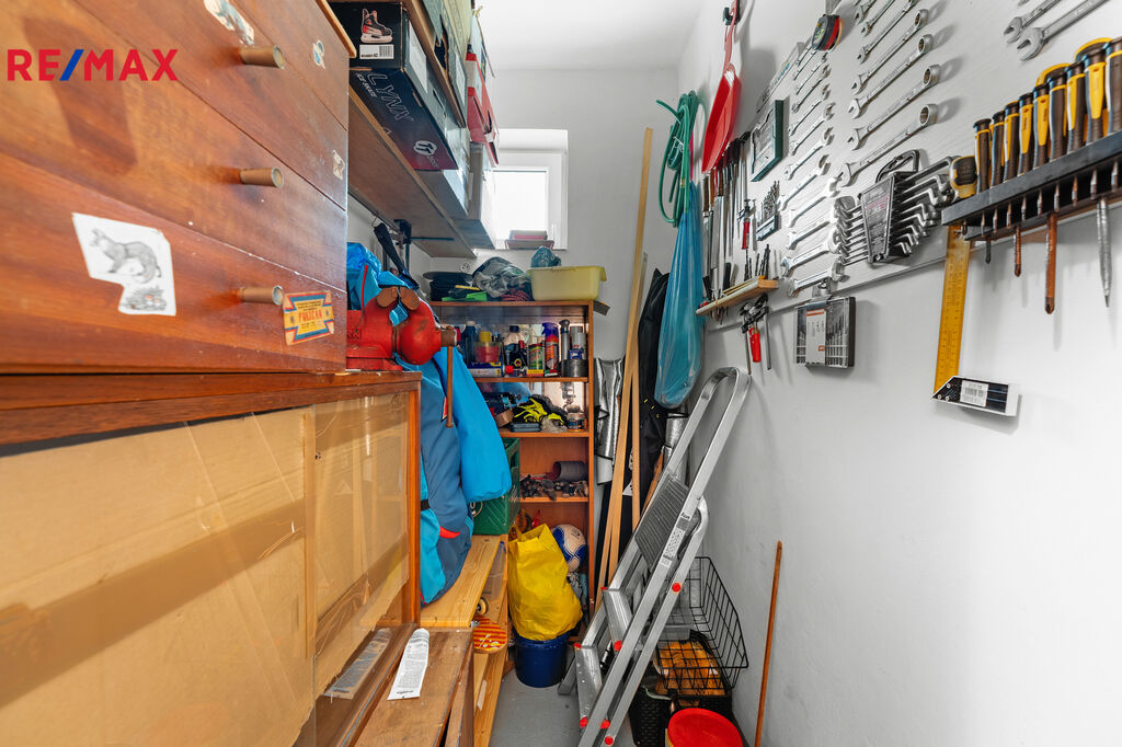 K bytu náleží také sklep, který poskytuje dostatek úložného prostoru pro sezónní či méně používané věci. V domě je dále k dispozici společná sušárna a kolárna. Vchod má vlastní kotelnu, kde byly v roce 2022 instalovány nové kondenzační kotle a zásobník TUV.
