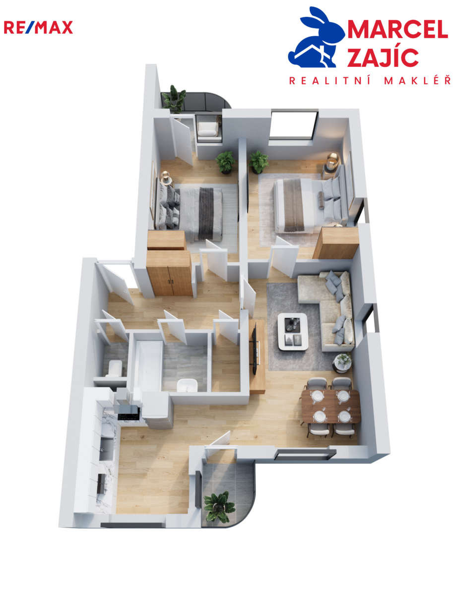 Jedná se o světlý a prakticky řešený byt s výbornou orientací – obývací pokoj a kuchyně směřují na jih, ložnice na sever. Byt je ve skvěle udržovaném stavu a o příjemné klima během letních měsíců se stará klimatizace.