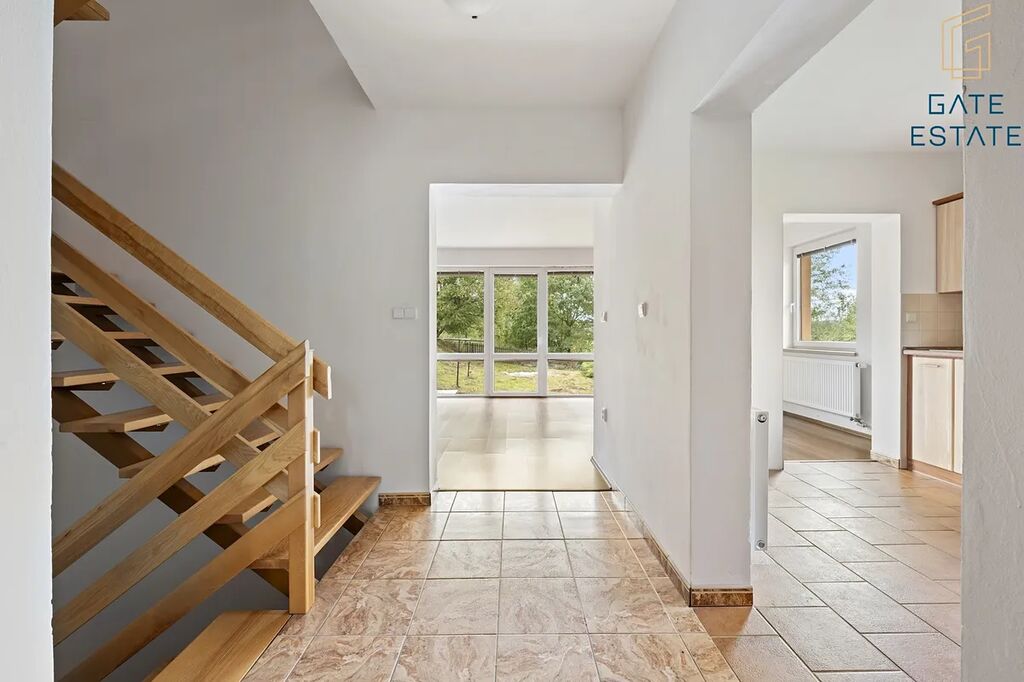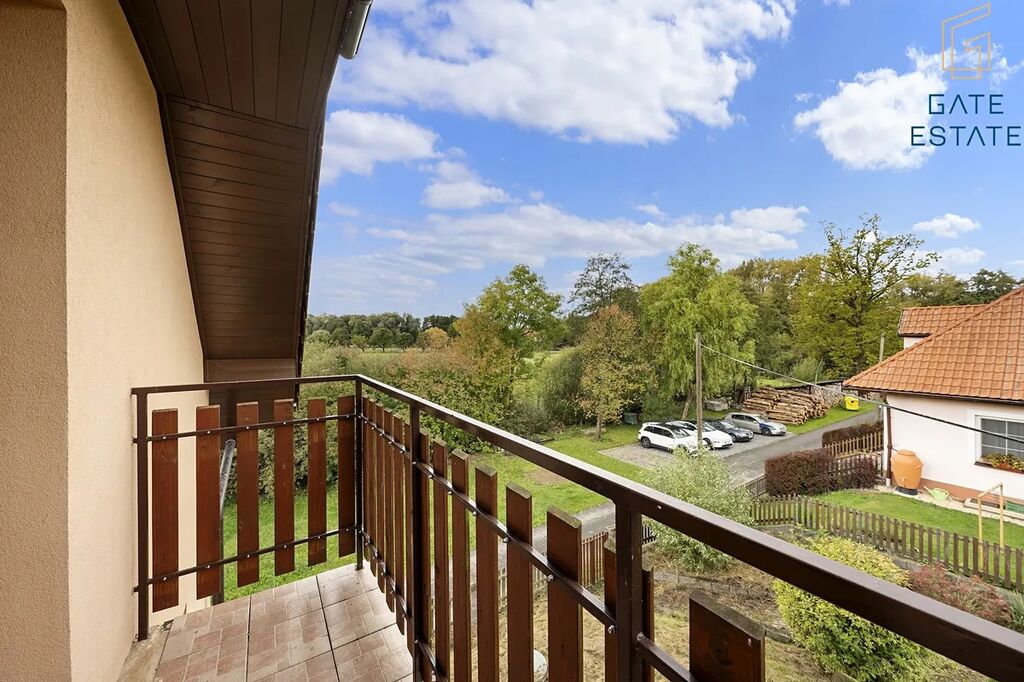 Klidná poloha na kraji obce zaručuje maximální soukromí a příjemné bydlení mimo ruch města, přesto s výbornou dostupností všech služeb.