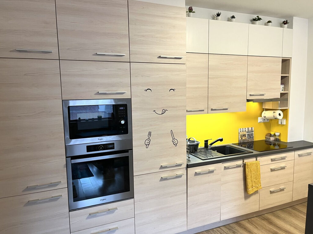Byt se nabízí částečně vybavený dle fotografií. Kuchyně je vybavena lednicí, elektrickou troubou, varnou deskou, myčkou, digestoří a dostatečným množstvím úložných prostor. Obývací část disponuje rozkládací pohovkou, konferenčním stolkem a TV stěnou. V koupelně je vana, umyvadlo, toaleta a pračka.