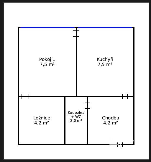 • Výměra: 32,8 m² včetně kóje na chodbě a sklepa