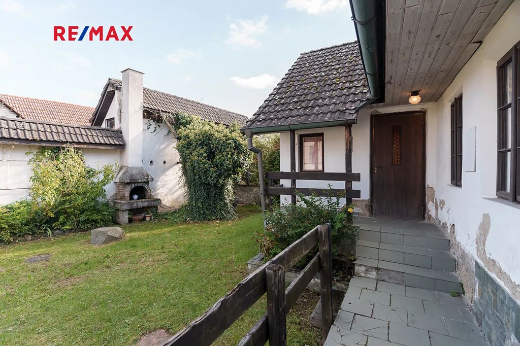 Na zahradě jsou ovocné stromy, malá terasa a venkovní krb. A hlavně klid a pohoda.