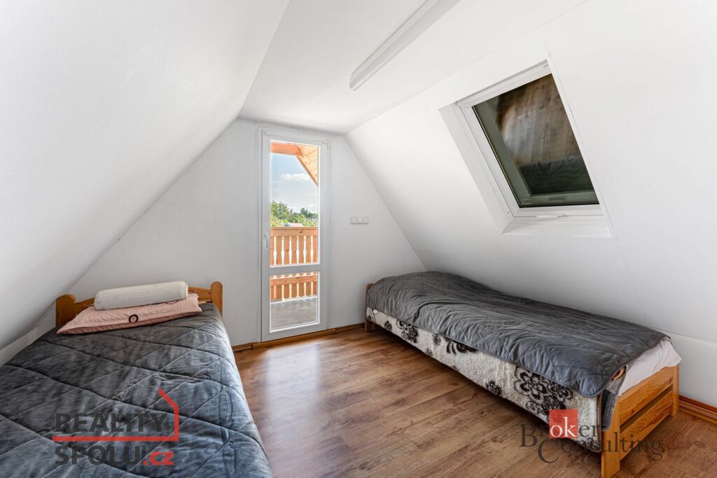 Chata je ve výborném stavu, ihned připravená k užívání – v přízemí najdete kuchyňku a obytnou část, nahoře prostor pro spaní. Na pozemku je studna, septik i elektřina.