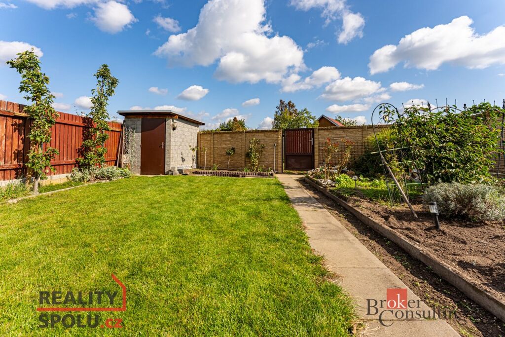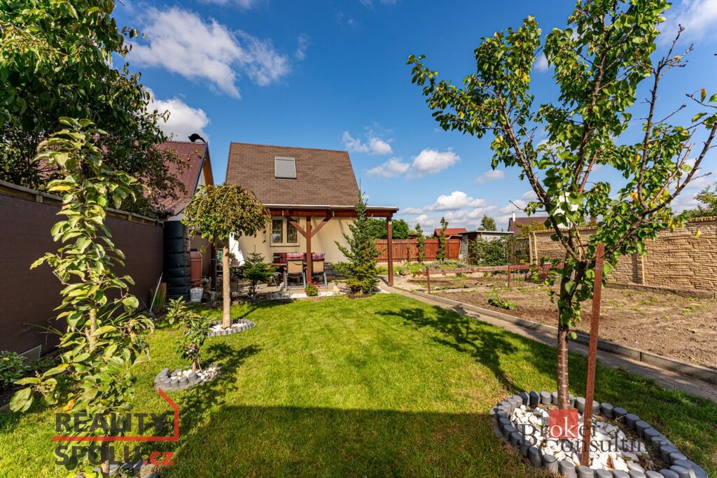 Zahrada láká k odpočinku, grilování, zahrádkaření. V okolí je klid, zeleň a přitom jen pár minut do centra Brandýsa i na dálnici.