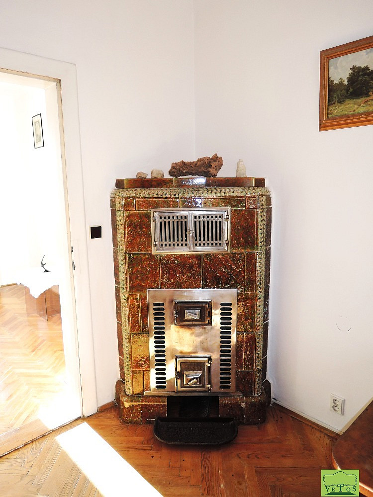 Vstupními dveřmi se dostaneme do chodby, z níž jsou paprskovitě možné vstupy do pokoje v přízemí, s výhledem do předzahrádky, vstup do kuchyně, která má výhled do vlastní zahrady, do spižírny, WC, a dále sejdeme po několika schodech dolů a vstupujeme na terasu, na niž navazuje vlastní zahrada se zahradním domkem. Vedle dveří na terasu vstoupíme po schodech do velmi rozměrné koupelny v suterénu se sprchou i vanou, sekčními prostory pro pračku, kotel na ohřev teplé vody a plynový kotel. Nelze zapomínat také na 2 sklepní prostory.