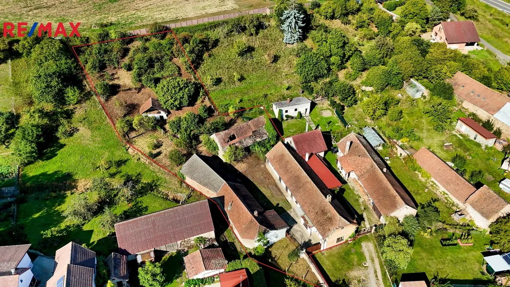 Na rozlehlém slunném pozemku o celkové výměře 2 446 m² najdete dvě obytné budovy, prostornou stodolu a samostatný sklípek. Usedlost je obklopena úrodnou půdou a ovocným sadem, který poskytuje nejen krásné prostředí, ale i možnost vlastní úrody.