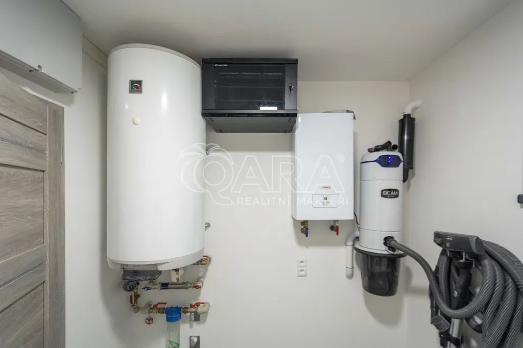 • Centrální vysavač, Jablotron, kamerové rozvody včetně kamer, okenní sítě proti hmyzu, vnitřní žaluzie. V ložnici venkovní žaluzie, rozvody internetu a TV v každém pokoji, noční osvětlení chodby s pohybovým čidlem, USB zásuvky, domovní videozvonek, okna Ecosun (třísklo).