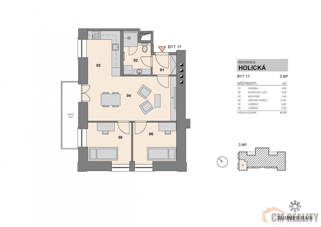 Nabízíme k pronájmu moderně zrekonstruovaný byt 3+kk o velikosti 52 m, situovaný ve 3.NP Rezidence Violka.