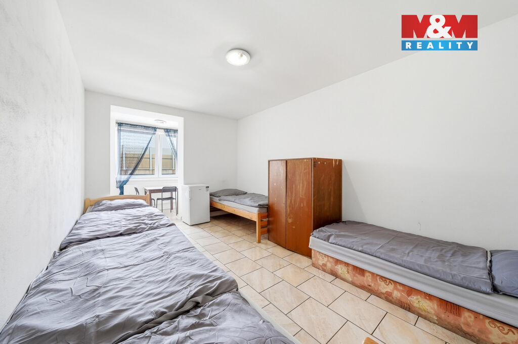 Nabízíme k prodeji bytový dům s vlastním pozemkem o velikosti 475 m². Dům prošel v roce 2018 rozsáhlou vnitřní rekonstrukcí - elektroinstalace, voda, odpady, plastová okna, ústřední topení včetně nových kotlů, omítky, podlahy, sociální zařízení. V prvním nadzemním podlaží se nachází 5 pokojů s kapacitou 18 lůžek, 2x koupelna, 3x WC, 1x kuchyňka a kotelna. Ve druhém nadzemním podlaží se nachází 7 pokojů s kapacitou 21 lůžek, 1x koupelna, 3x WC a 1x kuchyňka. Dále máme v nemovitosti půdní prostory s možností výstavby dalších ubytovacích prostor. Nemovitost je v současné době stále provozována a plně využita. Pro více informací a domluvení prohlídky nás neváhejte kontaktovat.