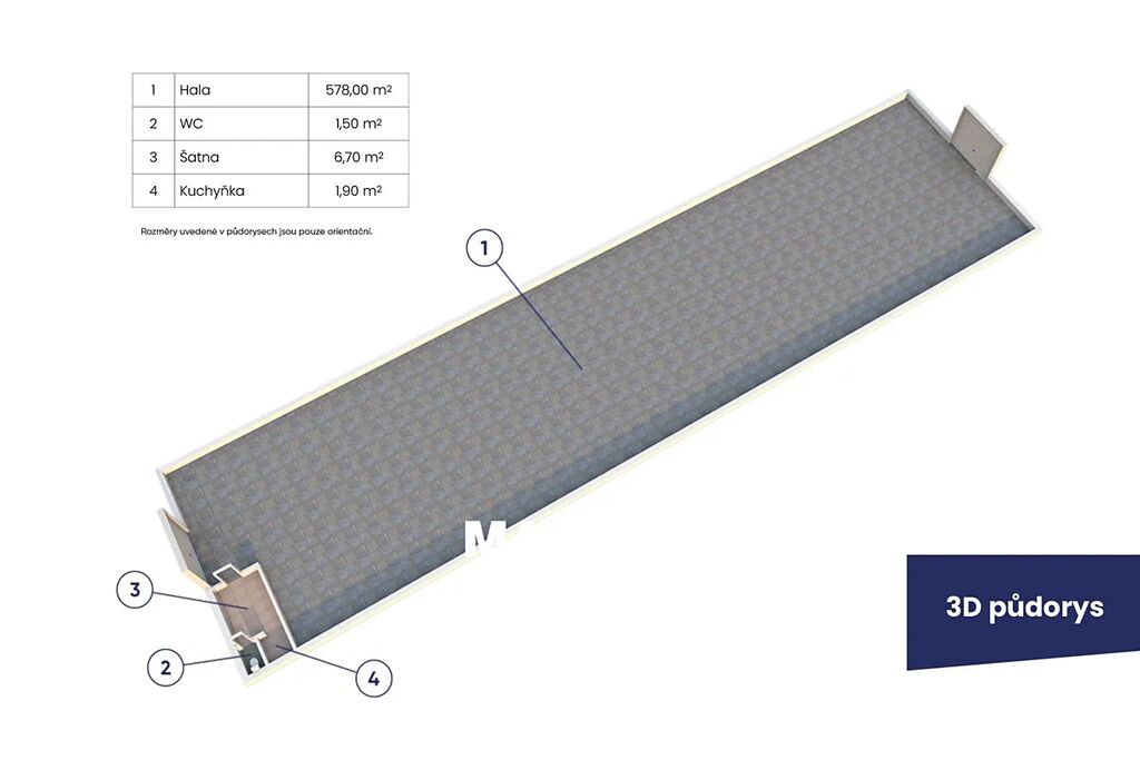 Prostor je ideální pro skladování, lehkou výrobu, e-shop logistiku nebo jako zázemí firmy.