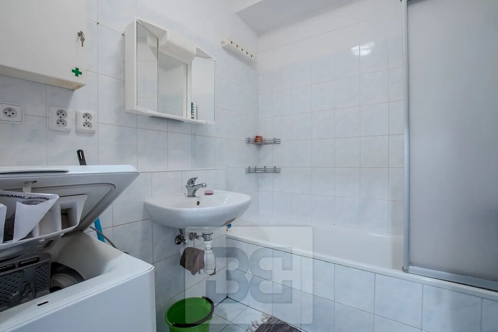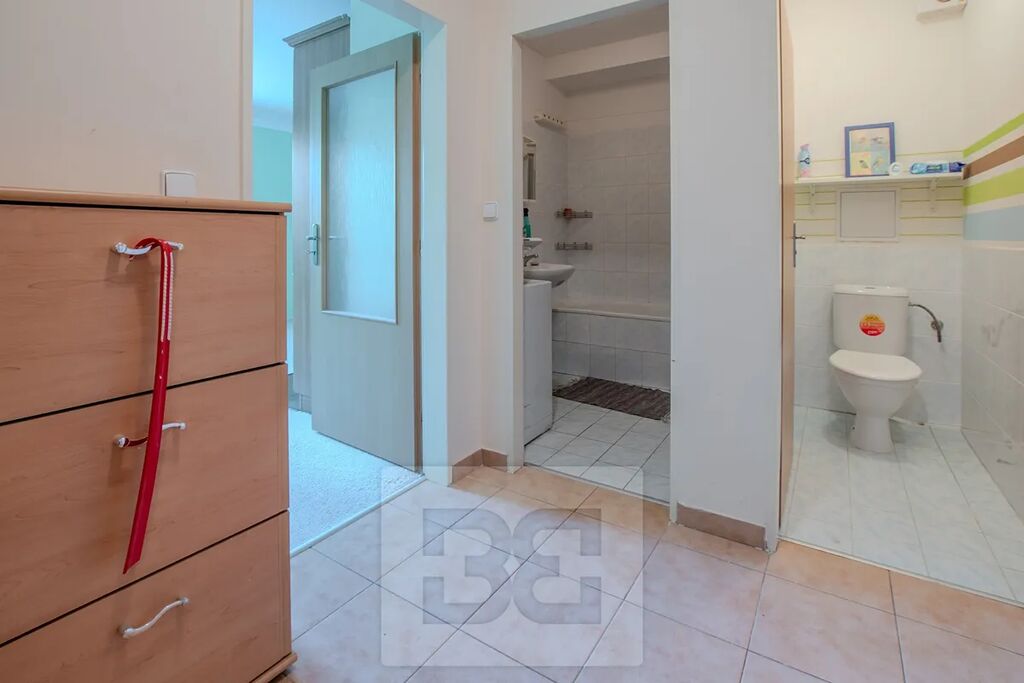 V předsíni se nachází botník a věšák. Koupelna je vybavena vanou a pračkou, toaleta je umístěna samostatně.