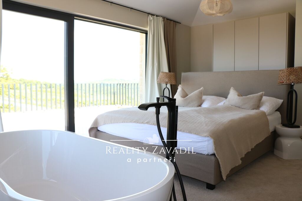 - Koupelna přístupná z ložnice (podlahové vytápění, sprcha, umyvadlo, WC)